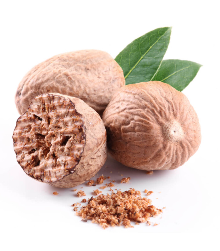 The hard brown seed from the nutmeg tree has a warm, spicy sweet flavor. Nutmeg contains many anti-oxidant, disease preventing, and health promoting properties. Nutmeg is used in sweet and spicy dishes like pies, custard, cookies spice cakes, cheese sauces, soups, egg and vegetables dishes.